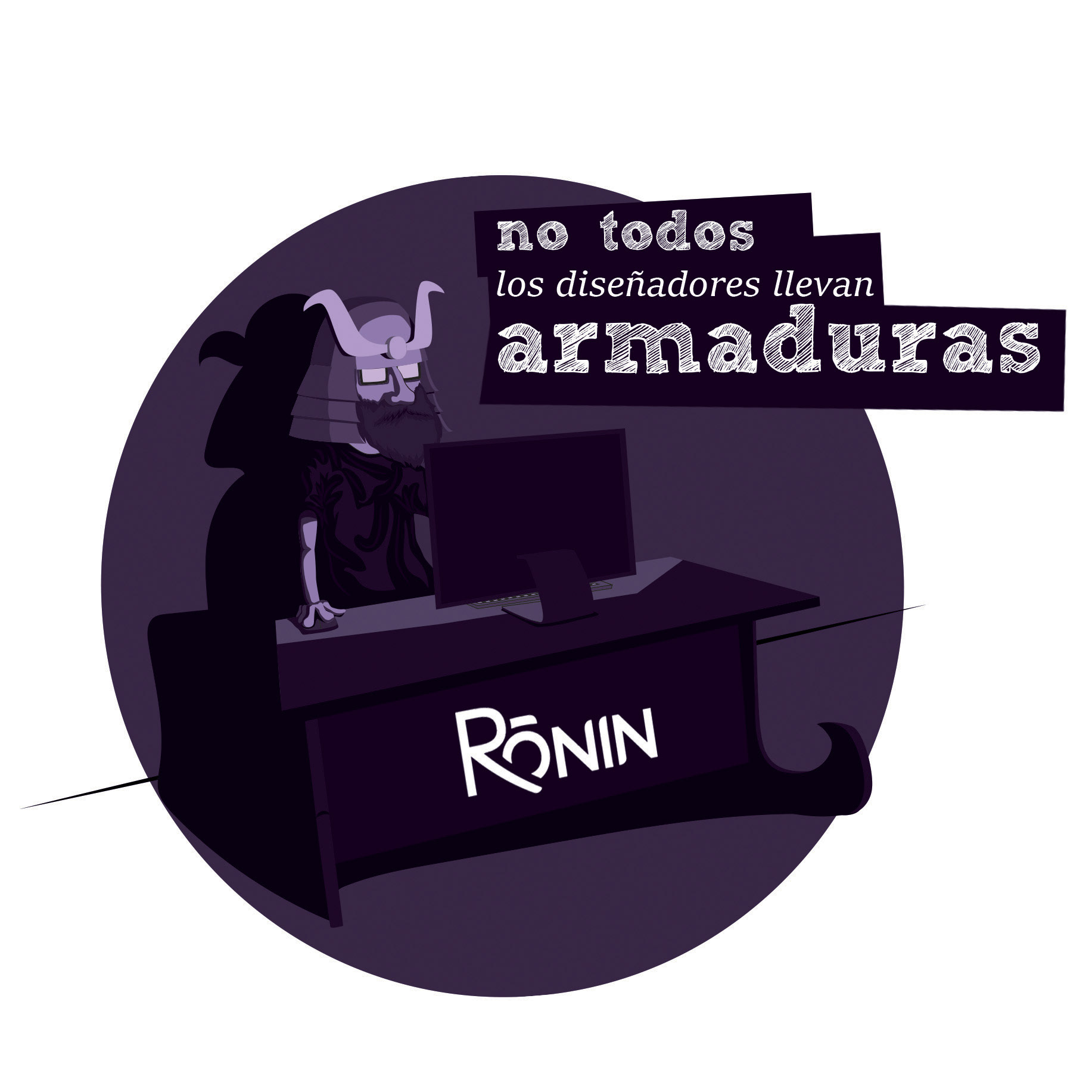- Conceptualización Creativa: Basándome en el nombre de la agencia, «Ronin» (samurái sin amo), y en la cultura del mundo publicitario, desarrollé una serie de conceptos que mezclaban la iconografía japonesa con el humor y las situaciones del día a día de un creativo.