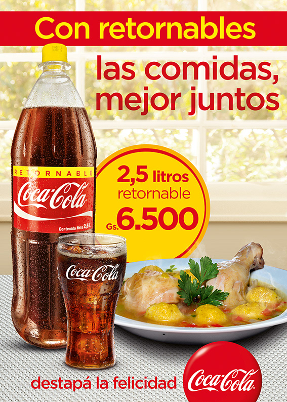 1. Diseño de Materiales P.O.P. para Coca-Cola: Creé numerosos materiales gráficos para el punto de venta, como afiches y carteles promocionales, adaptando las grandes campañas internacionales al mercado paraguayo para asegurar una presencia de marca dominante y coherente.