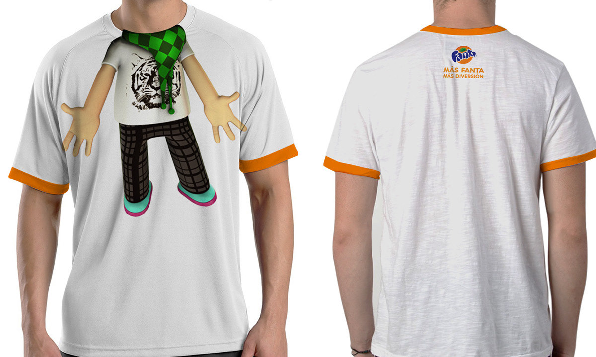 3. Diseño de Camisetas para Fanta: Para la marca Fanta, aproveché su universo de personajes únicos y divertidos para diseñar una línea de camisetas. El objetivo era crear un merchandising atractivo y coleccionable que conectara con el público más joven de la marca.